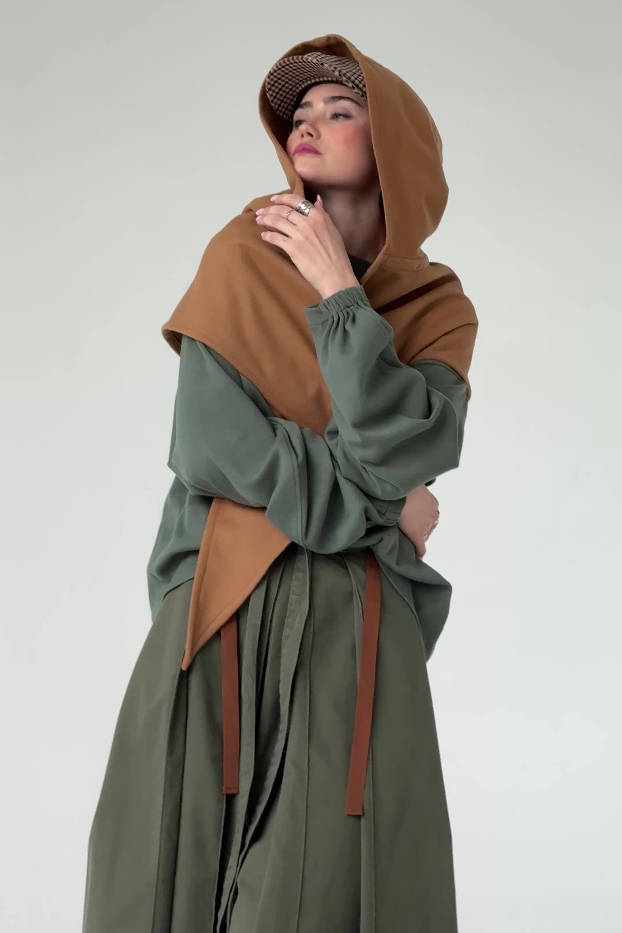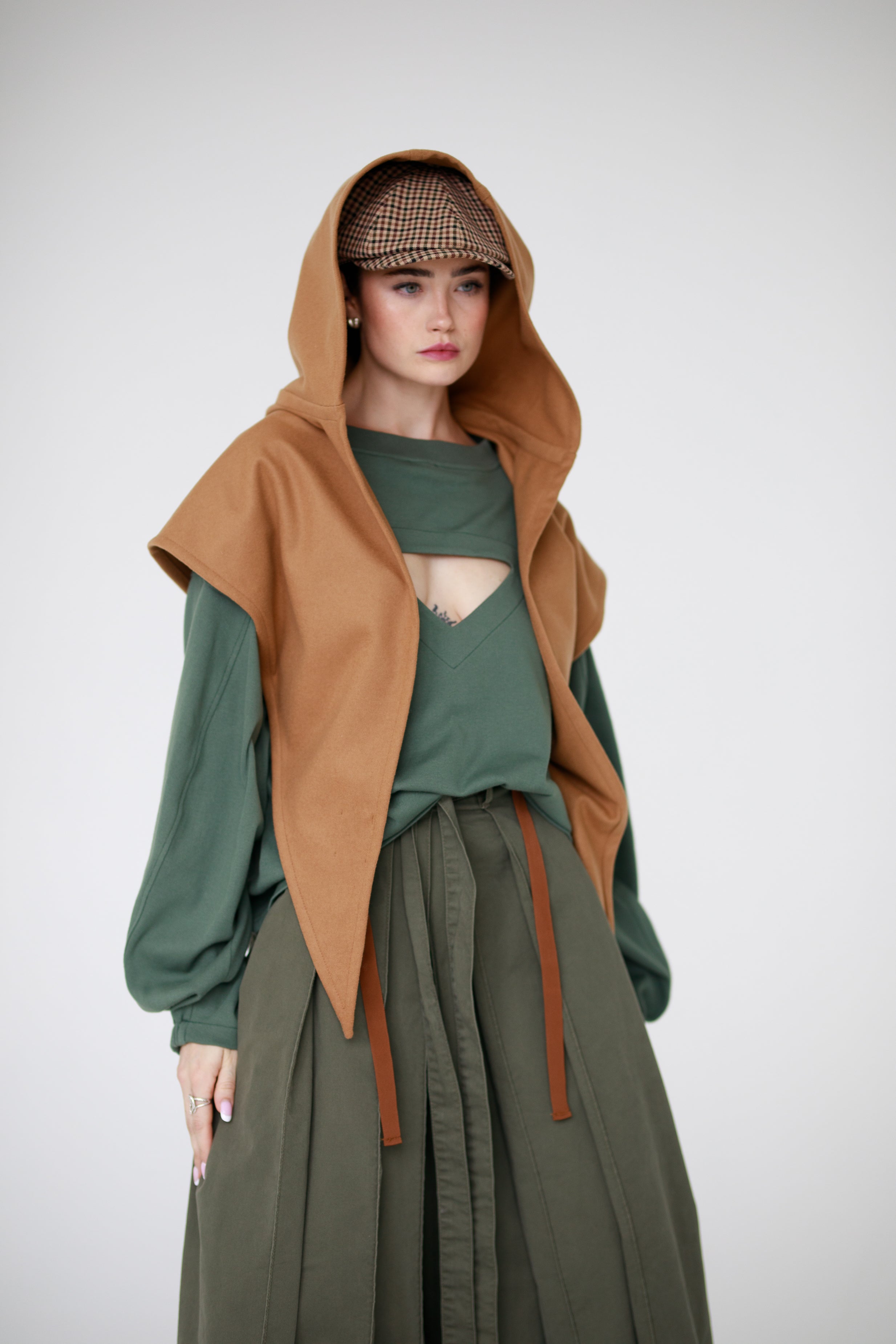 Nie jest zwykłym kapturem. The Cowl to przedłużony kaptur w formie chusty, który otula, owija i dodaje charakteru każdej stylizacji. Możesz go nosić na swetrze, kurtce, płaszczu czy puchówce; na zewnątrz lub pod spodem, owinięty wokół szyi, zawiązany na supełek, spięty broszką lub ozdobną agrafką. W każdej formie jest inny – zawsze wyjątkowy.