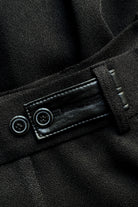 Z przodu spodnie zapinane są na suwak i dwa guziki, a z tyłu kryje się prawdziwy smaczek krawiecki: regulacja w pasie na stylowych guzikowych paskach, znana z mistrzowskich męskich garniturów.