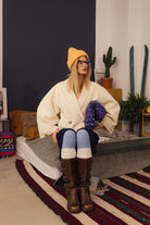 Wykonany ze wspanialej, strukturalnej mieszanki wełny i bawełny, z widoczną fakturą drobnych fal sprawia wrażenie dużego ciepłego swetra. I naprawdę jest ciepły! Pewnie też dlatego, że od spodu wykończony mięsistą bawełną - wszystko dla komfortu i lepszego utrzymania formy.