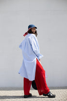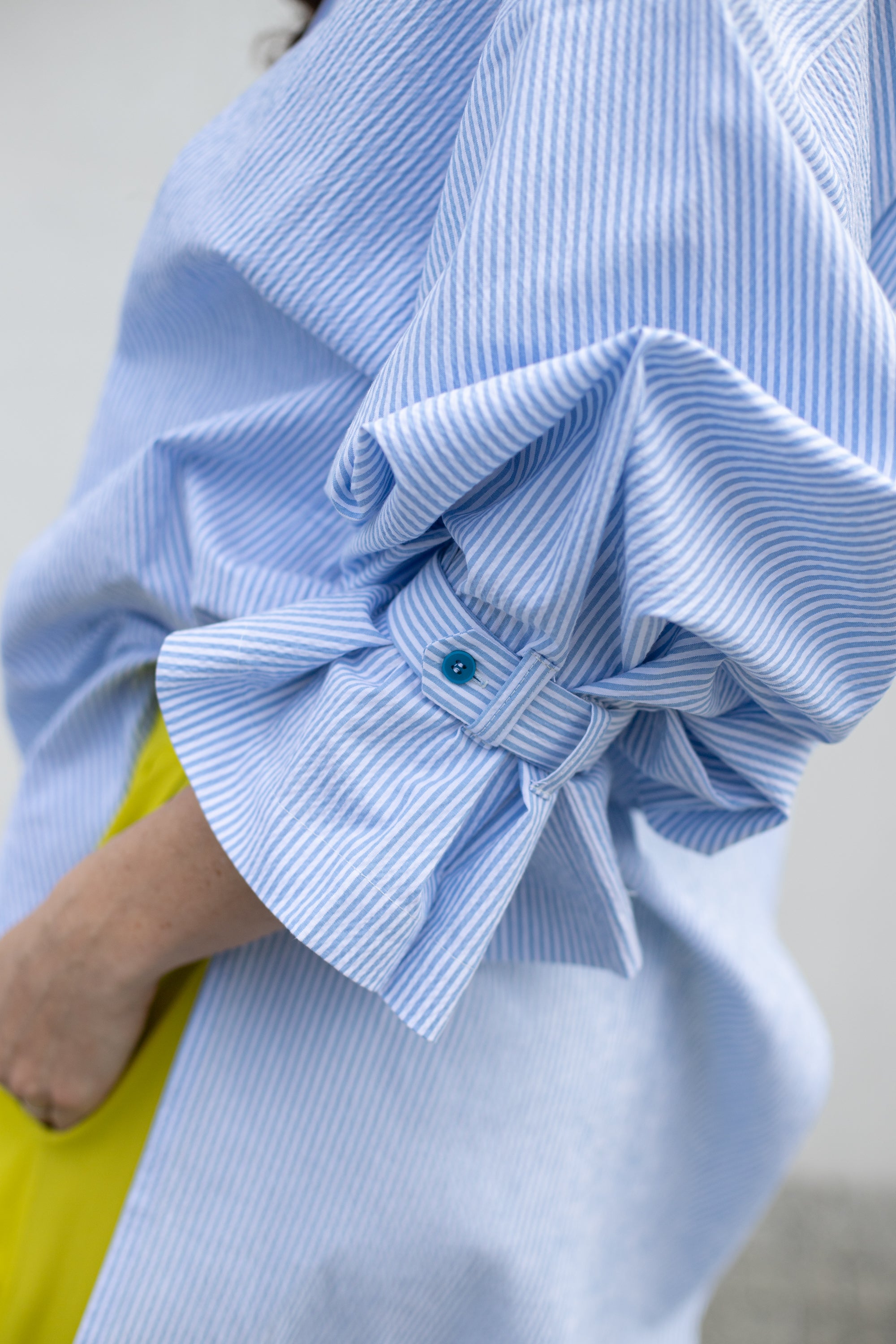 Przedłużona koszula oversize z kimonowymi rękawami (z możliwością spięcia w nadgarstku) wykonana z idealnej letniej falistej bawełny.
