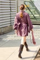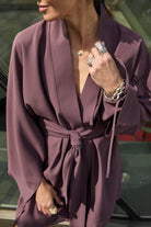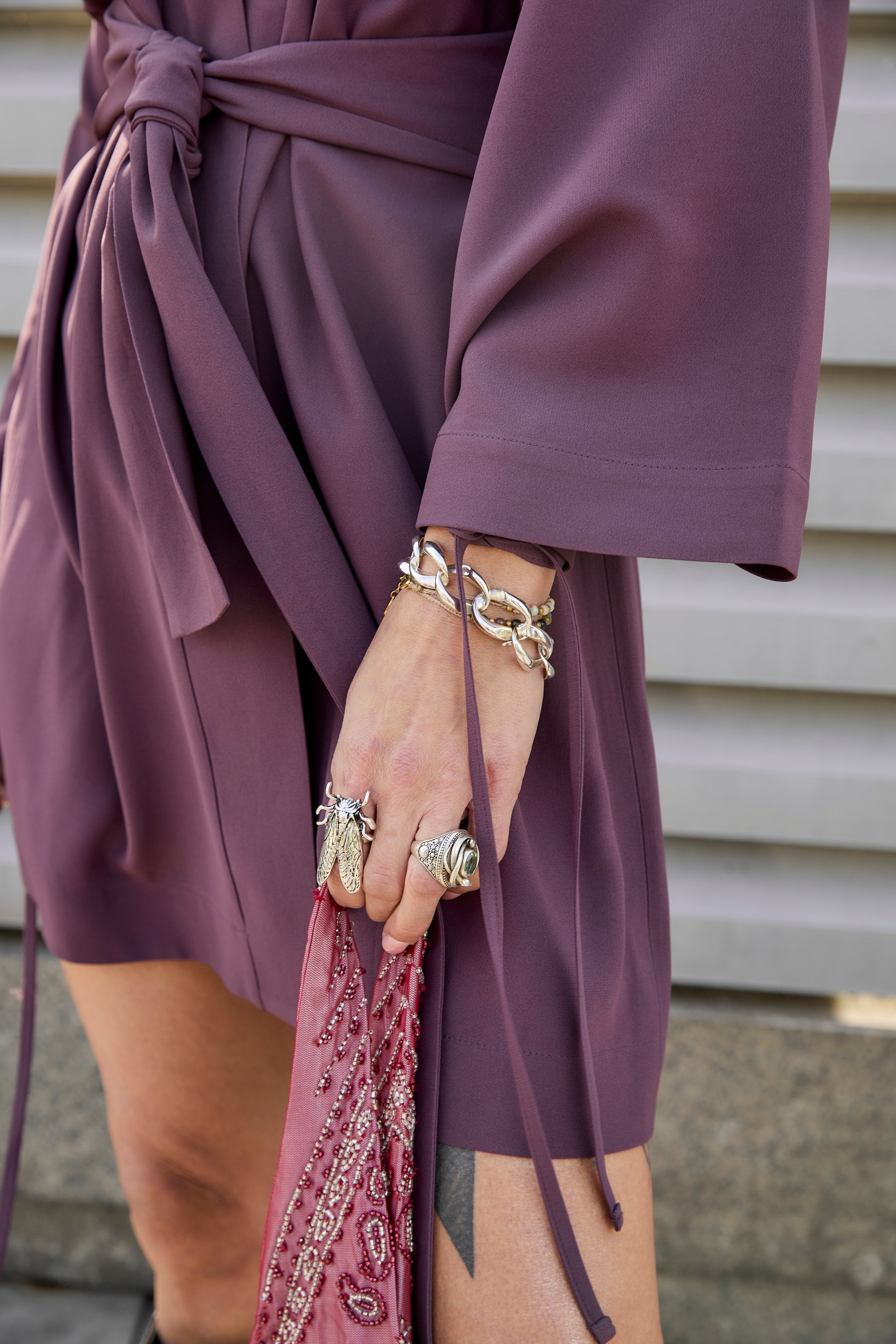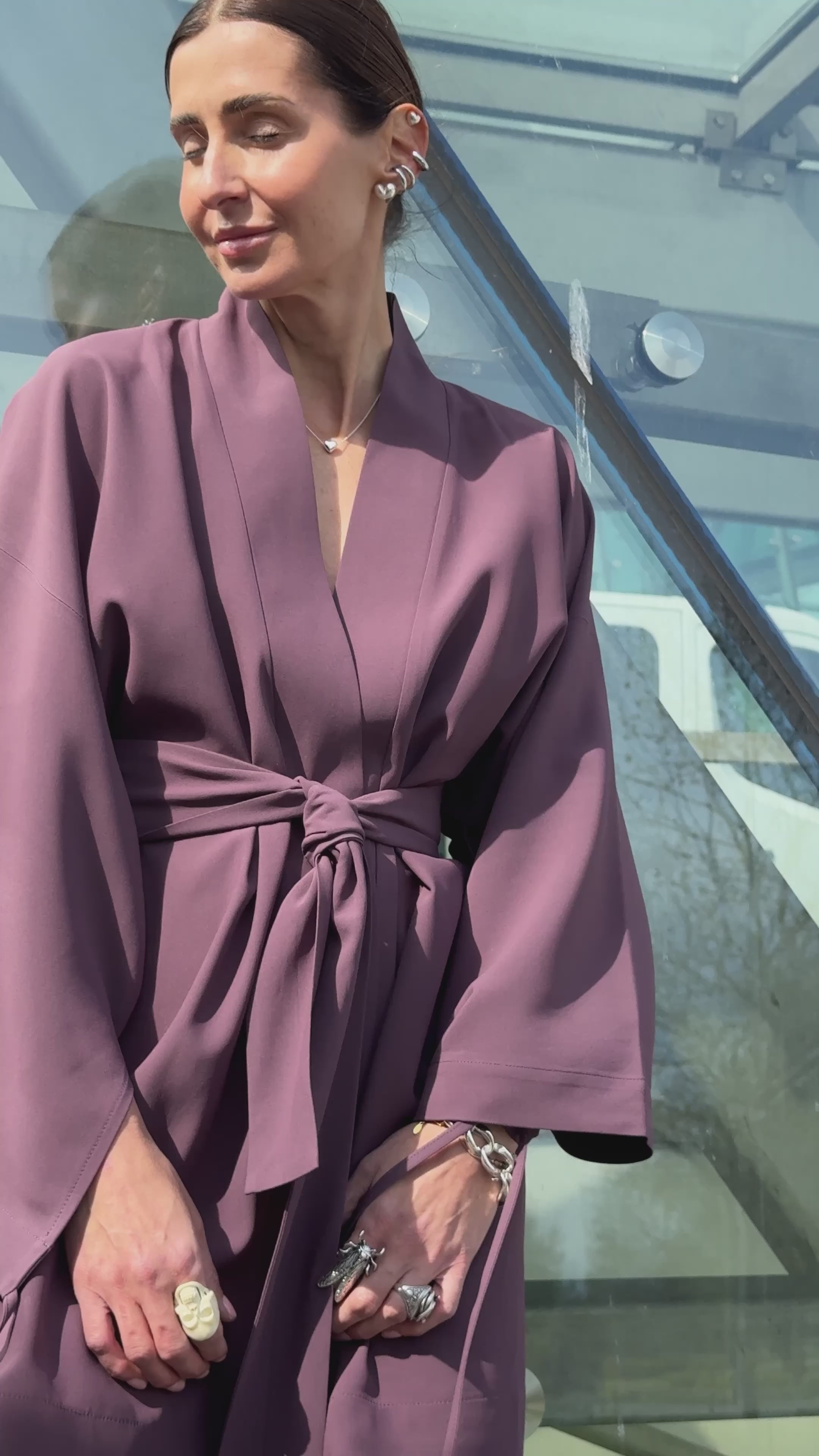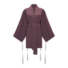 Midi kimono z paskiem uszyte z wyjątkowej mieszanki acetatu i wiskozy – nowoczesnej, wysokogatunkowej tkaniny o chłodnym chwycie i subtelnym połysku.