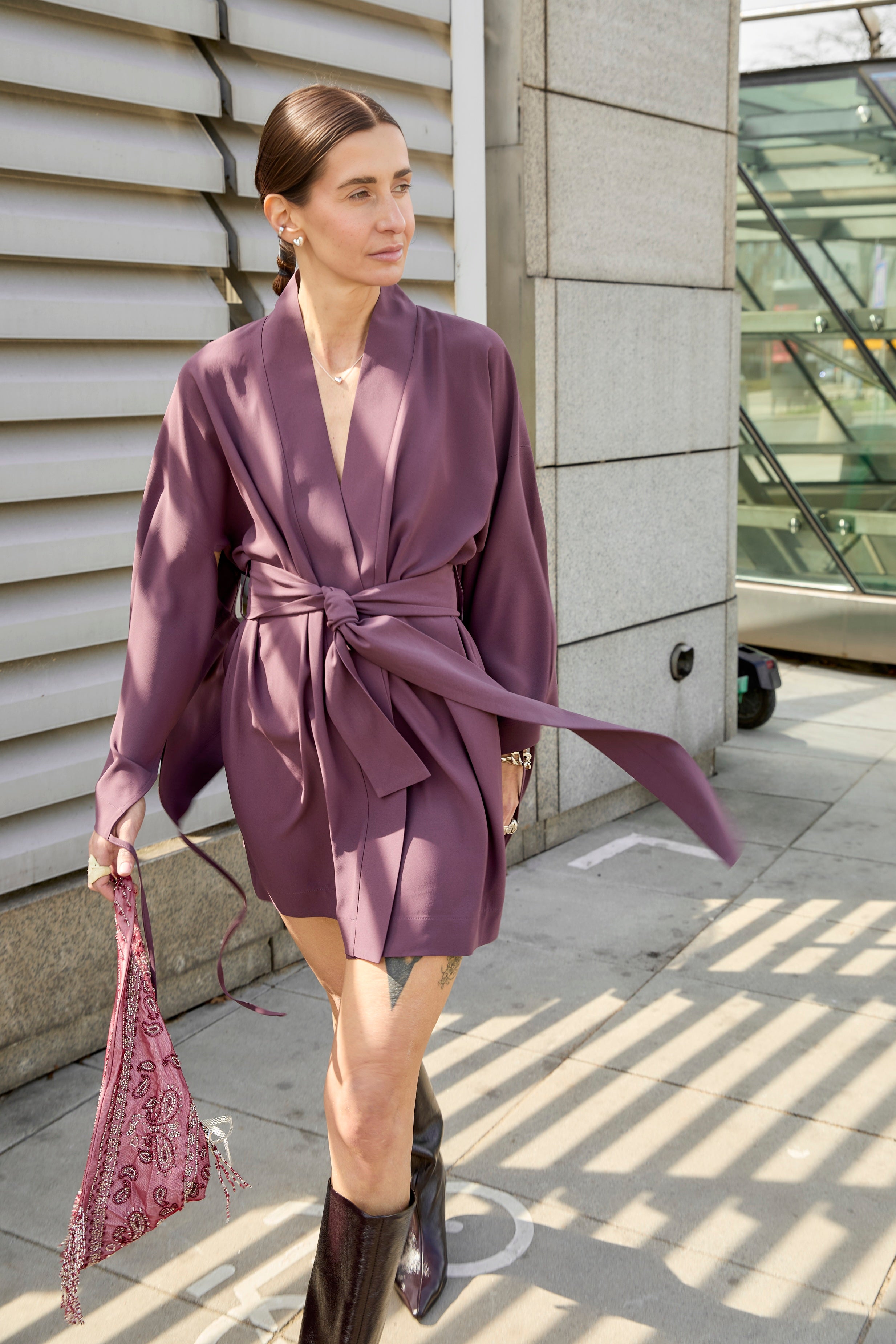 • Kolor: subtelny odcień fioletu – coś pomiędzy lawendą a śliwką, ale bardziej przygaszony, pudrowy, z nutą szarości.