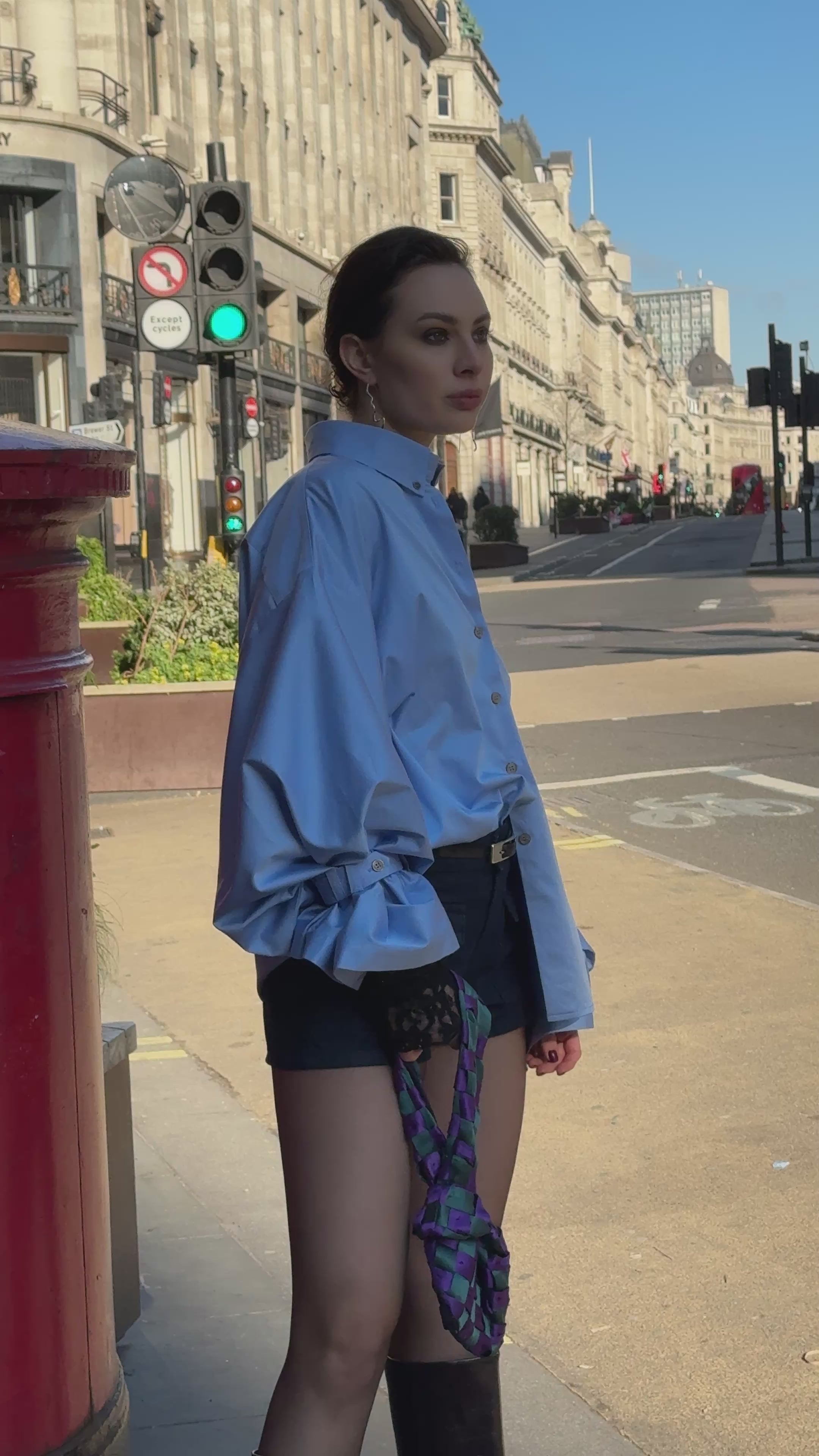 Koszula oversize z kimonowymi rękawami, inspirowana brytyjską klasyką – nie tylko dzięki tkaninie od renomowanego domu mody.