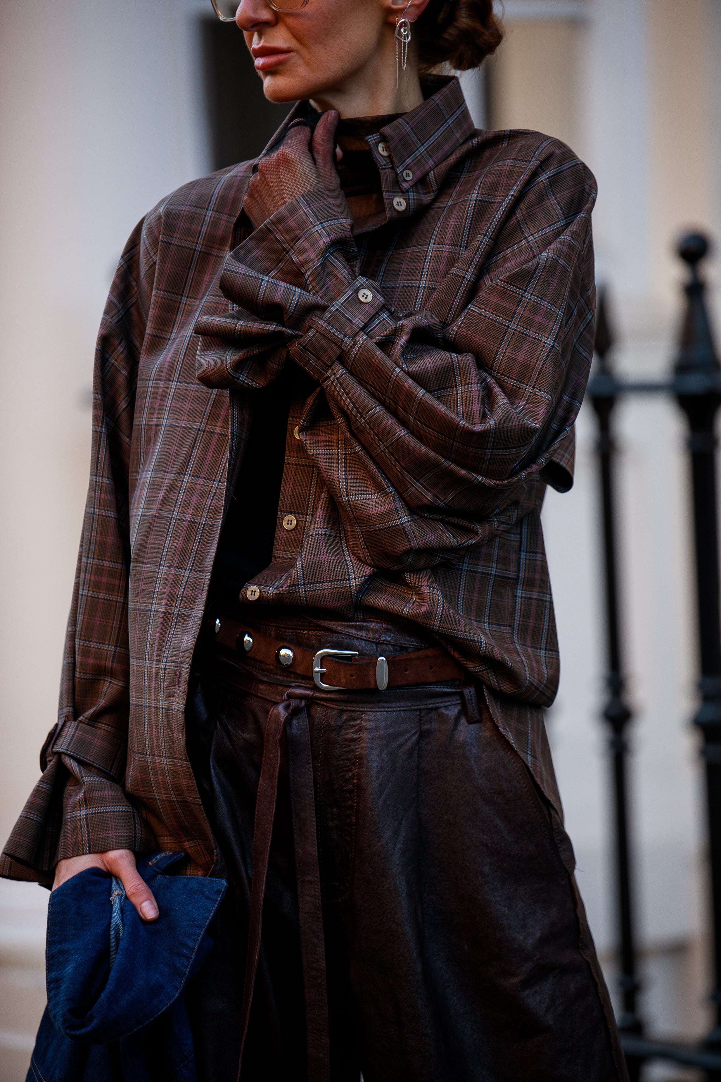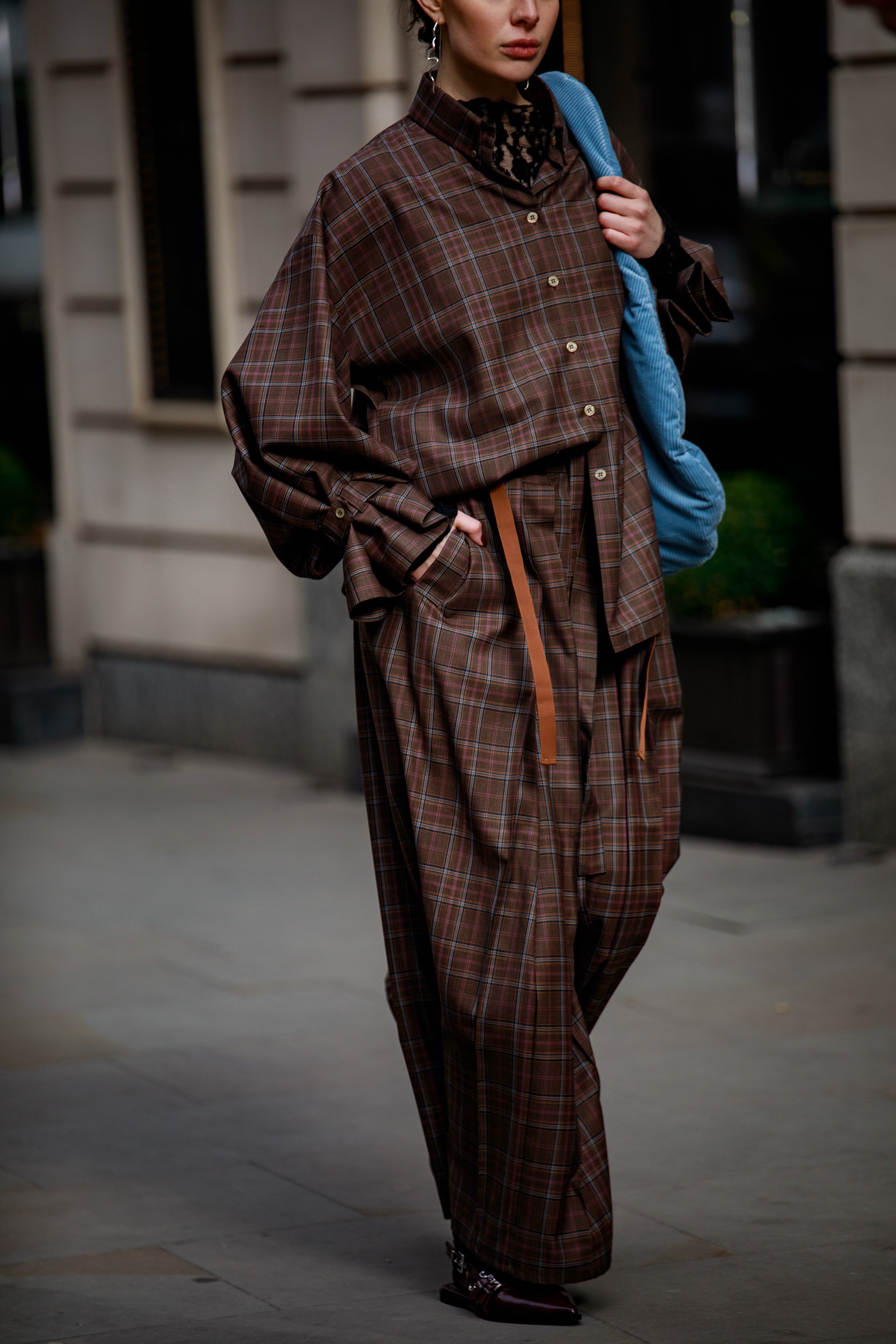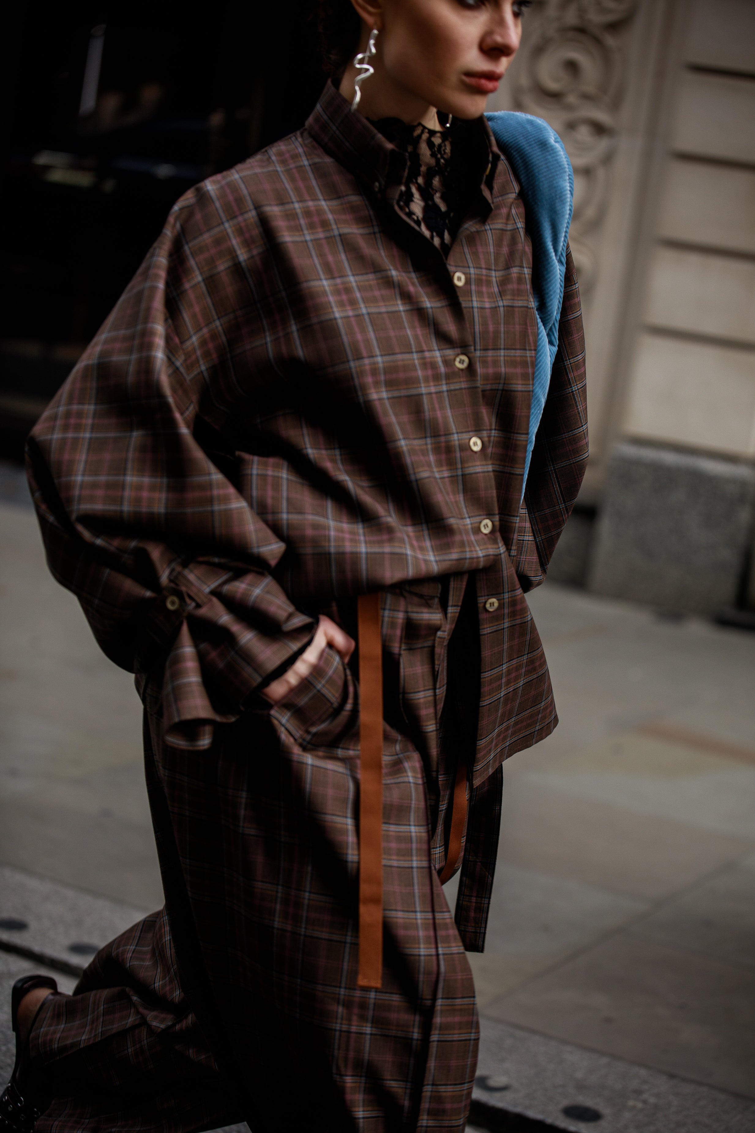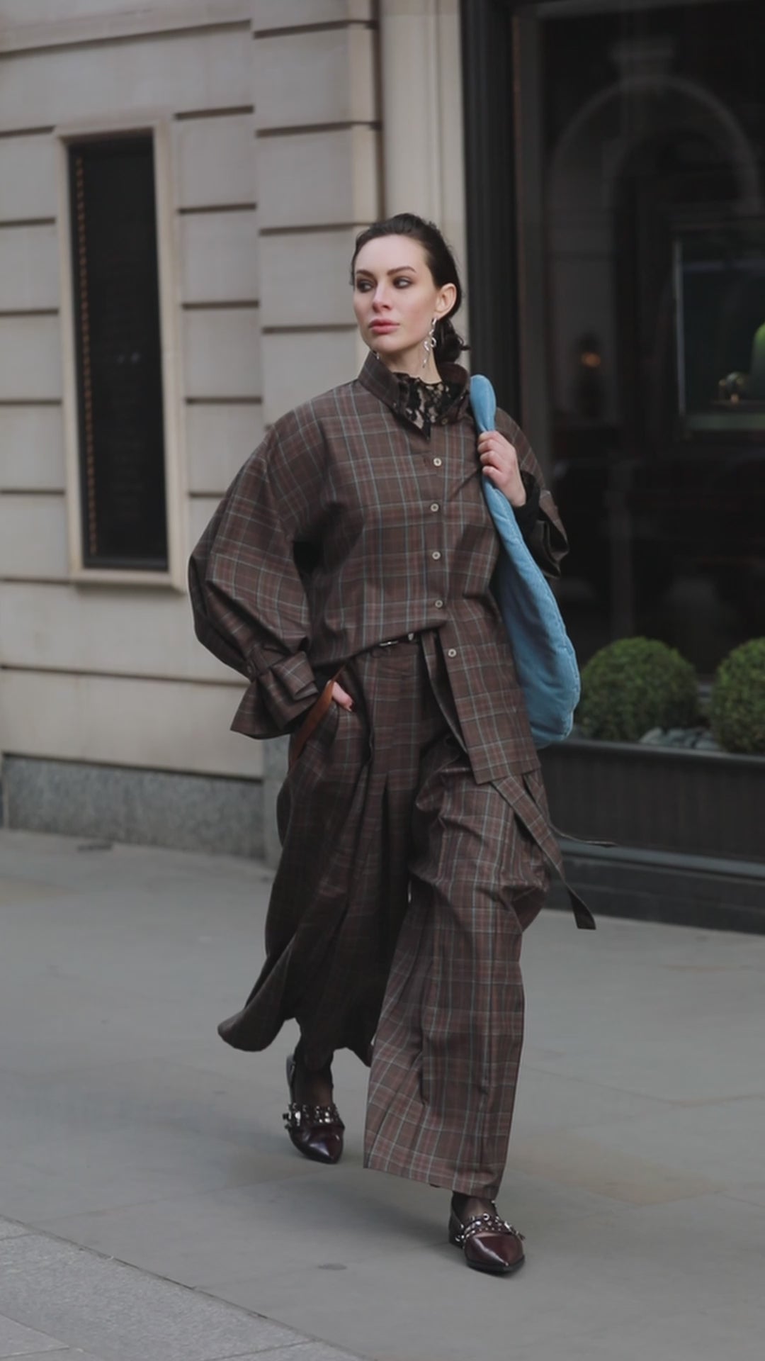 Koszula oversize z kimonowymi rękawami, inspirowana brytyjską klasyką – nie tylko dzięki tkaninie od renomowanego domu mody.