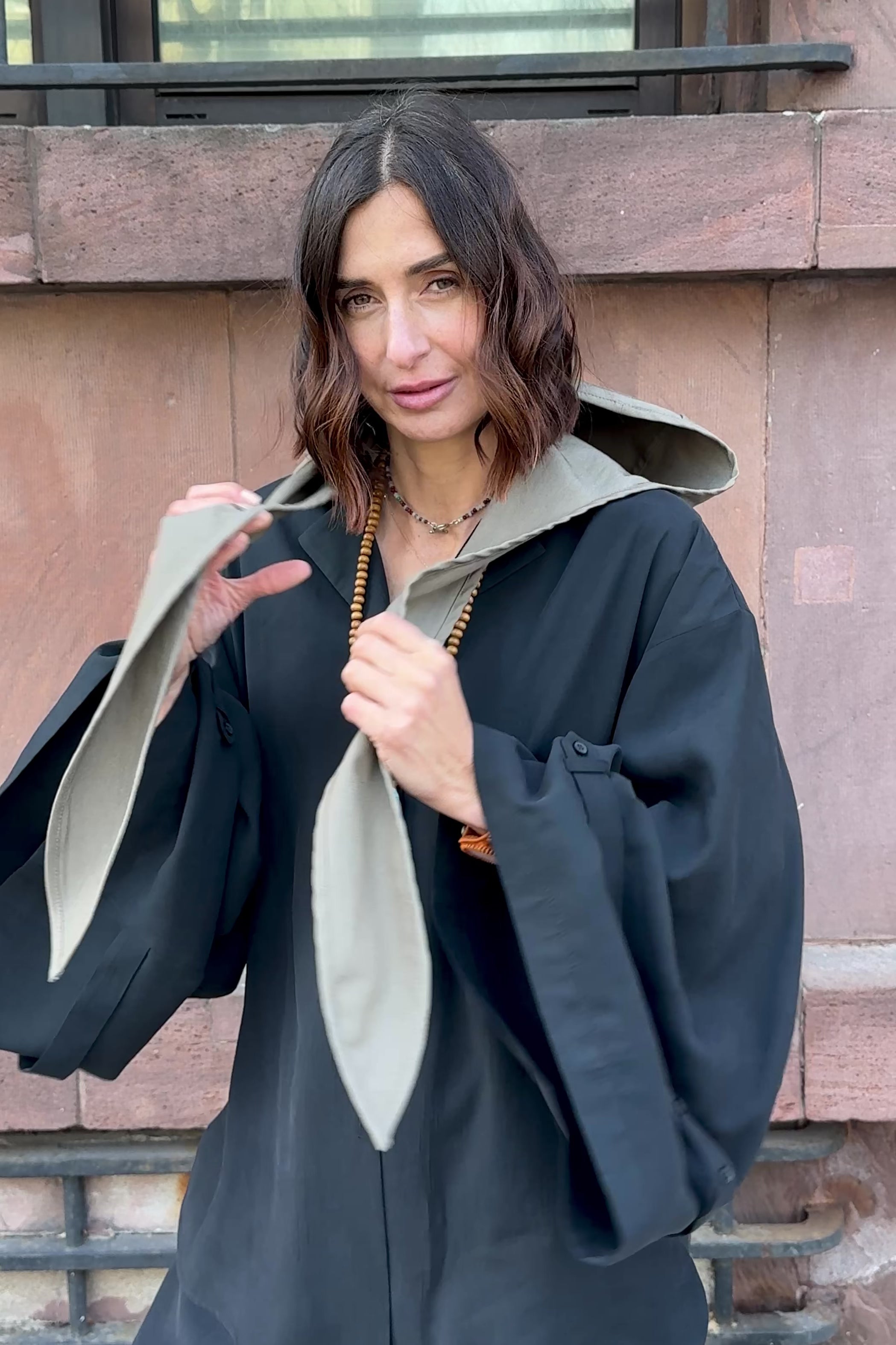 Uszyty z tej samej tkaniny co Samue Trench i zeszłoroczny Notting Hill, dzięki czemu naturalnie wpisuje się w całą linię i pozwala budować spójne, warstwowe stylizacje. Materiał dobrze trzyma formę, a jednocześnie pozostaje miękki i komfortowy w noszeniu.