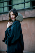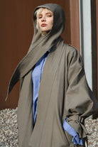 • Minimalistyczny kaptur wykończony jak chusta: z przedłużonymi przodami