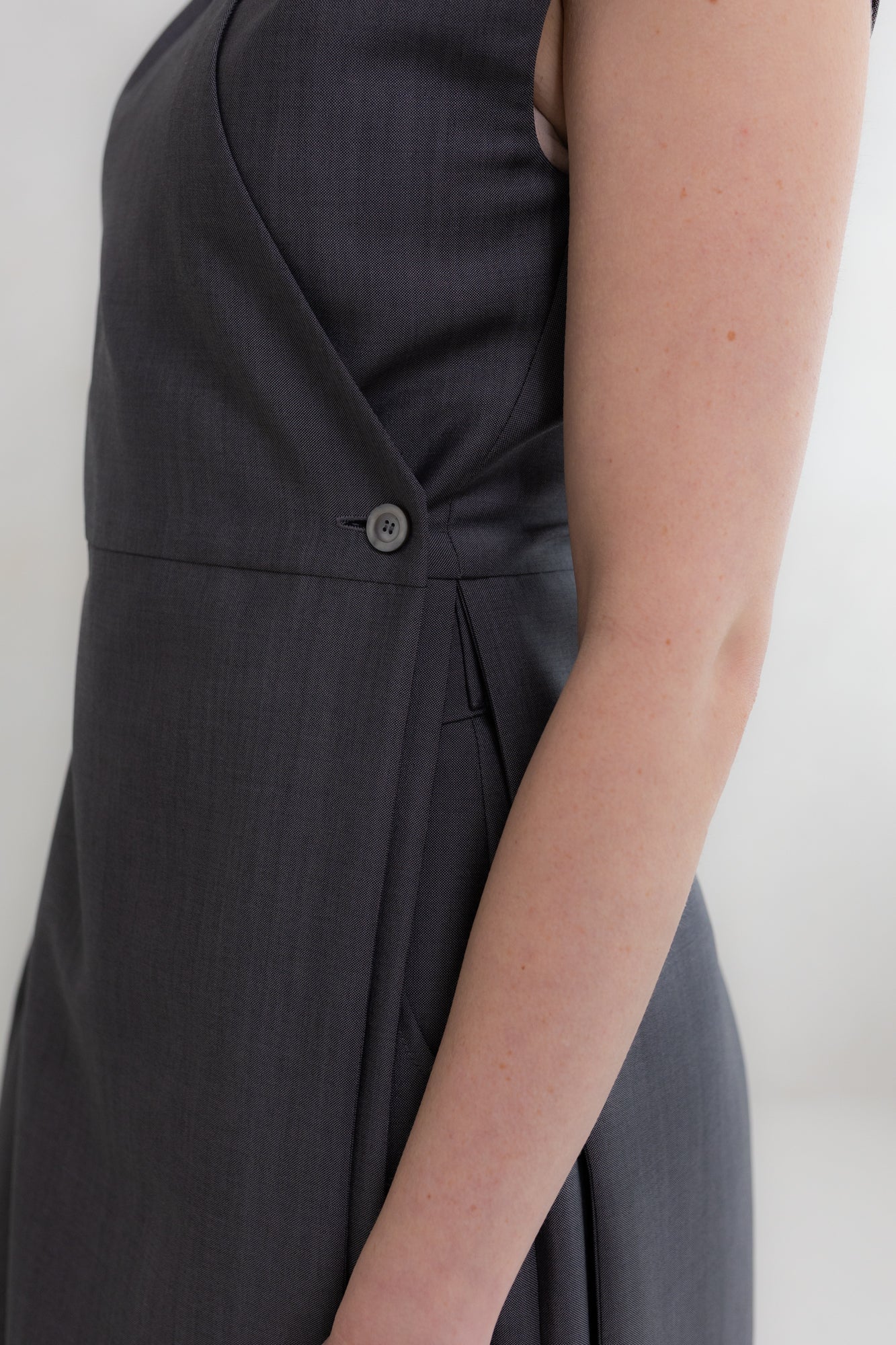 Druga odsłona Waszej ulubionej kamizelki — tym razem uszyta z absolutnie wyjątkowej tkaniny: garniturowej mieszanki wełny dziewiczej i najwyższej jakości kaszmiru, w odcieniu eleganckiego gunmetal. To materiał na całe życie, niezwykle rzadki, o finiszu i strukturze, której nie da się pomylić z niczym innym.