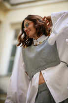 To moja odpowiedź na warstwy latem — prosto, przewiewnie, ale z charakterem. Można ją nosić na koszulę, T-shirt, albo bezpośrednio na ciało.