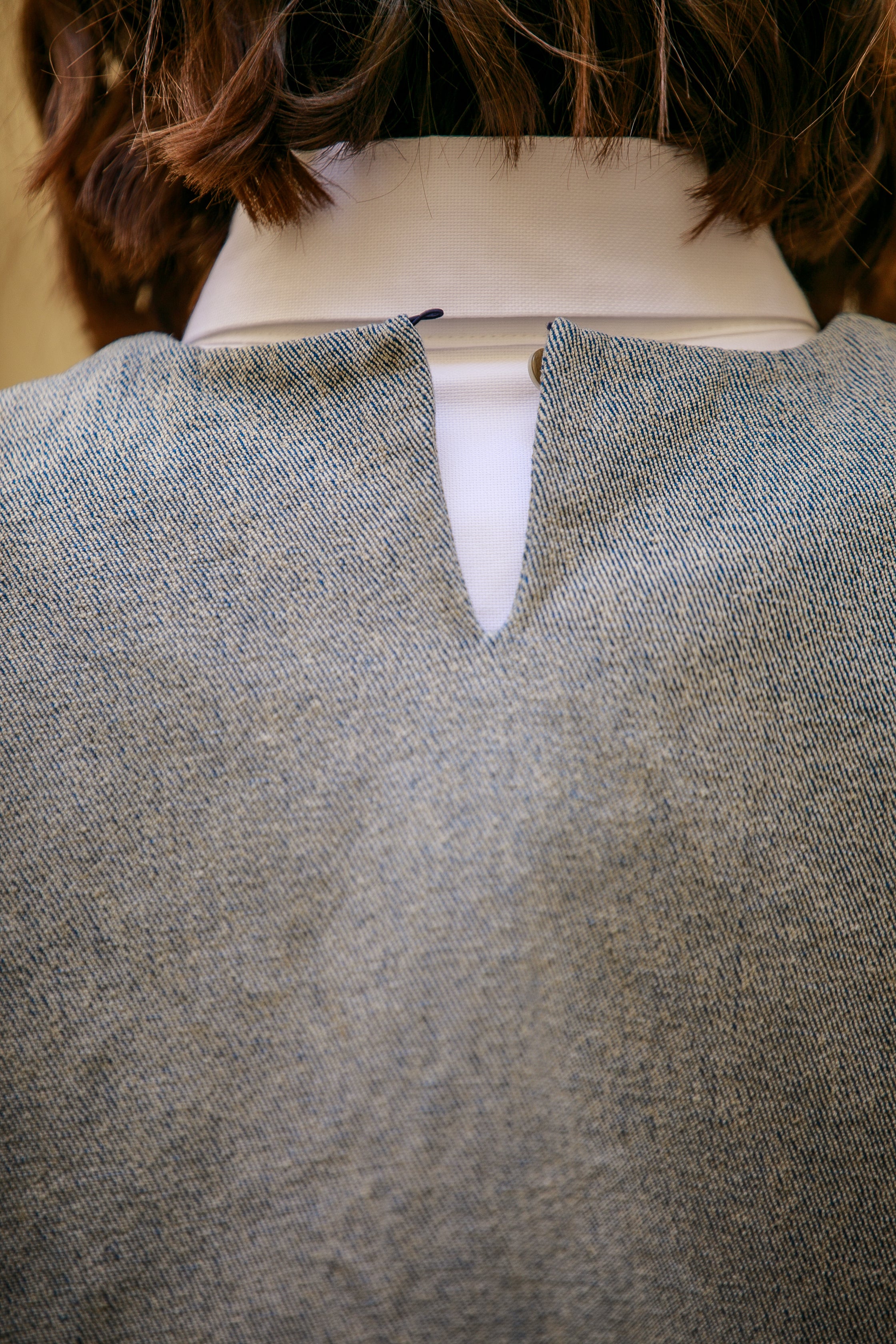 Uszyta z tej samej tkaniny co Sojo Hemp — mieszanki bawełny i włókien konopnych. Materiał jest naturalny, mięsisty i trwały, a jednocześnie przyjemny dla skóry i oddychający. Dobrze trzyma formę, dzięki czemu kamizelka zachowuje swoją architektoniczną, czystą linię.