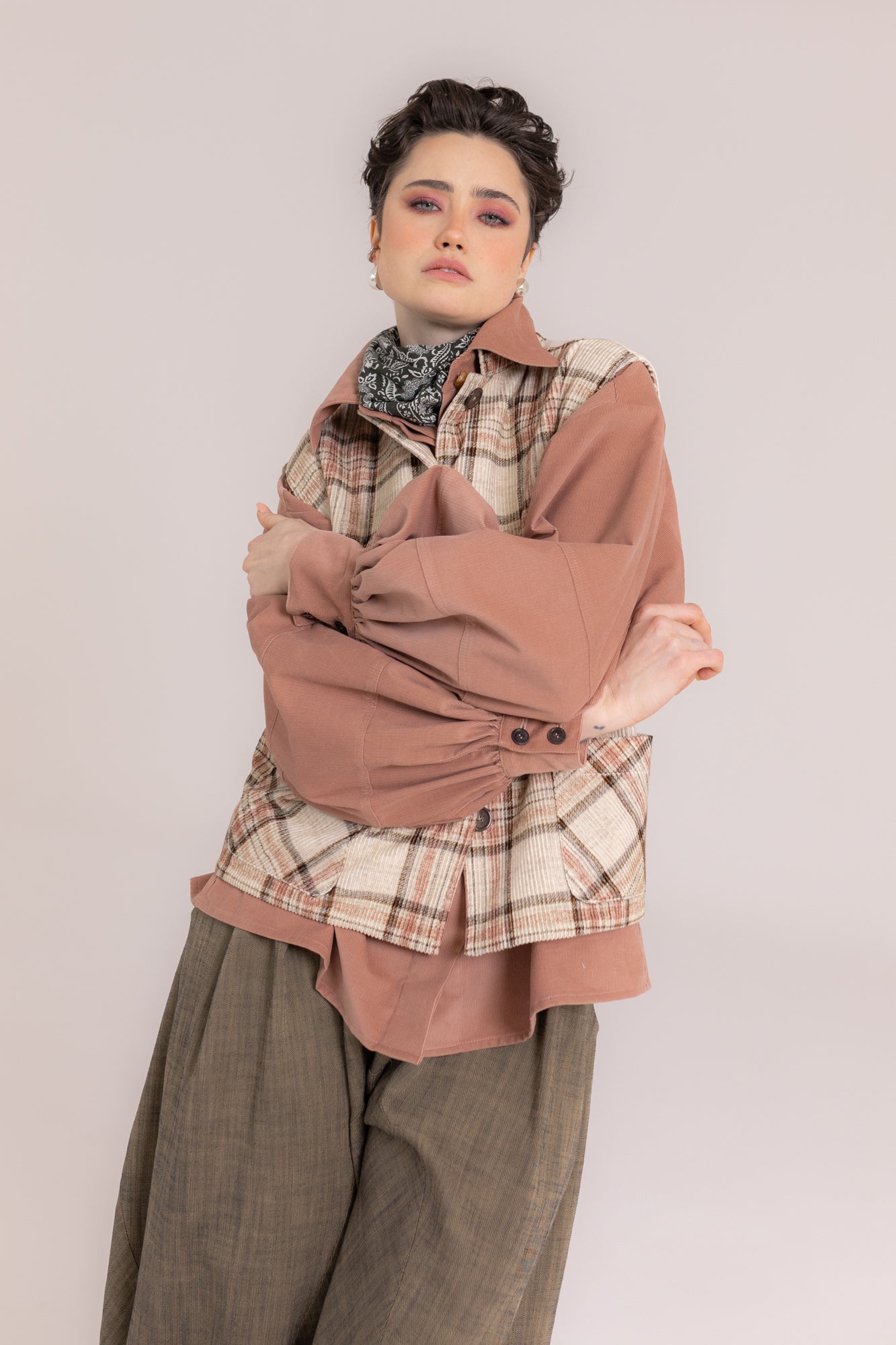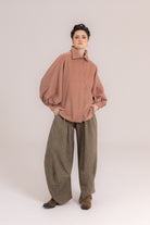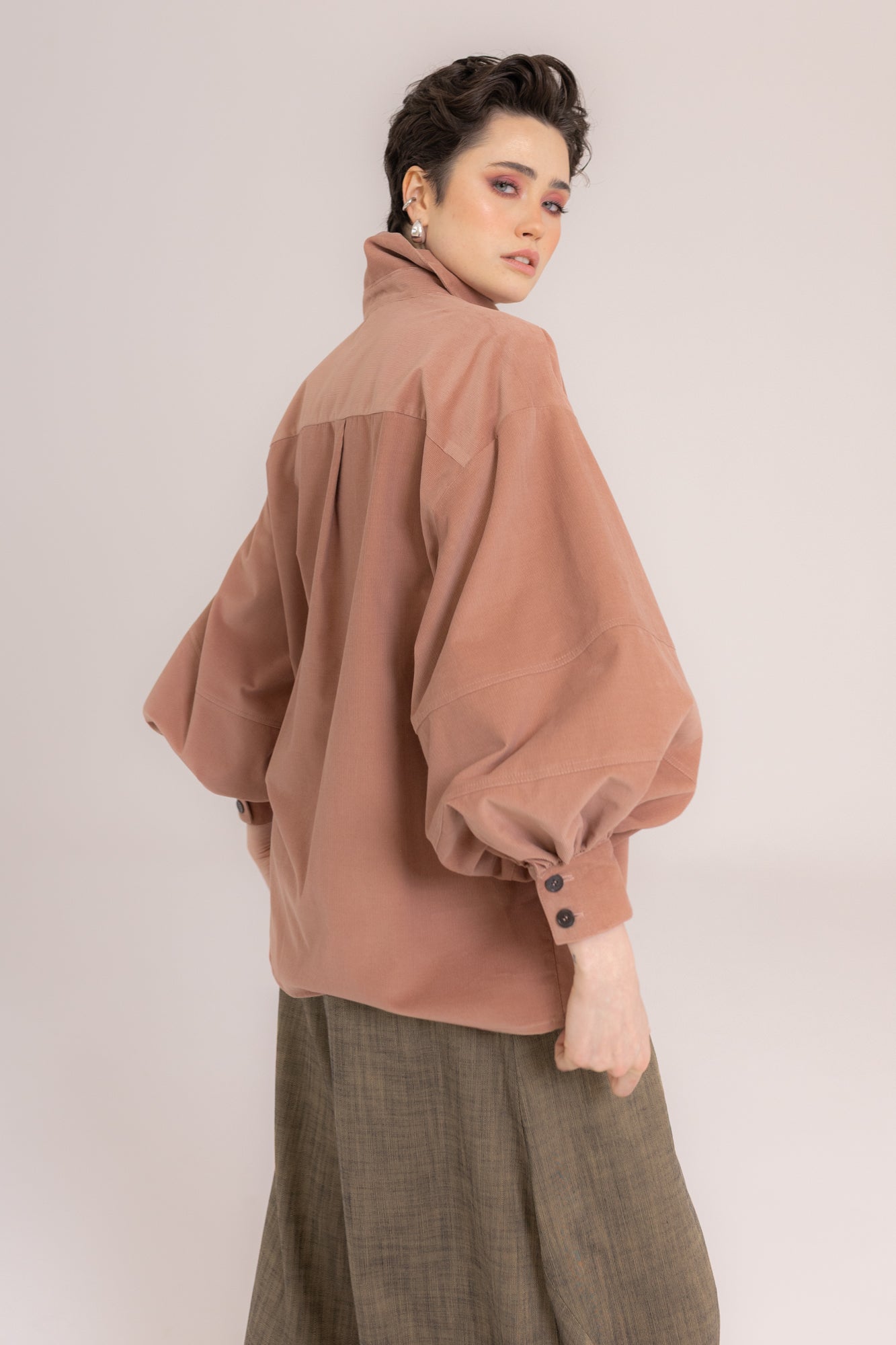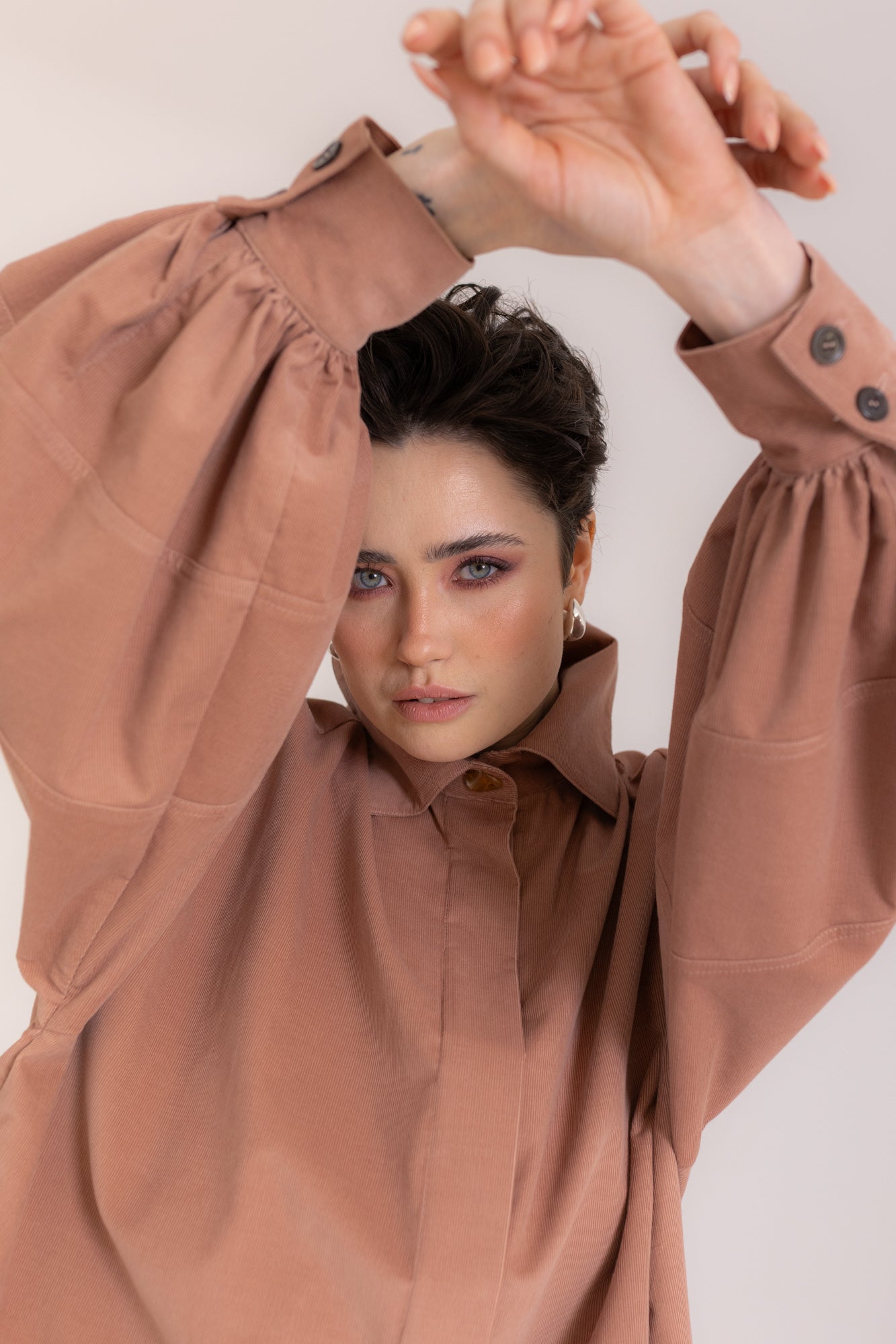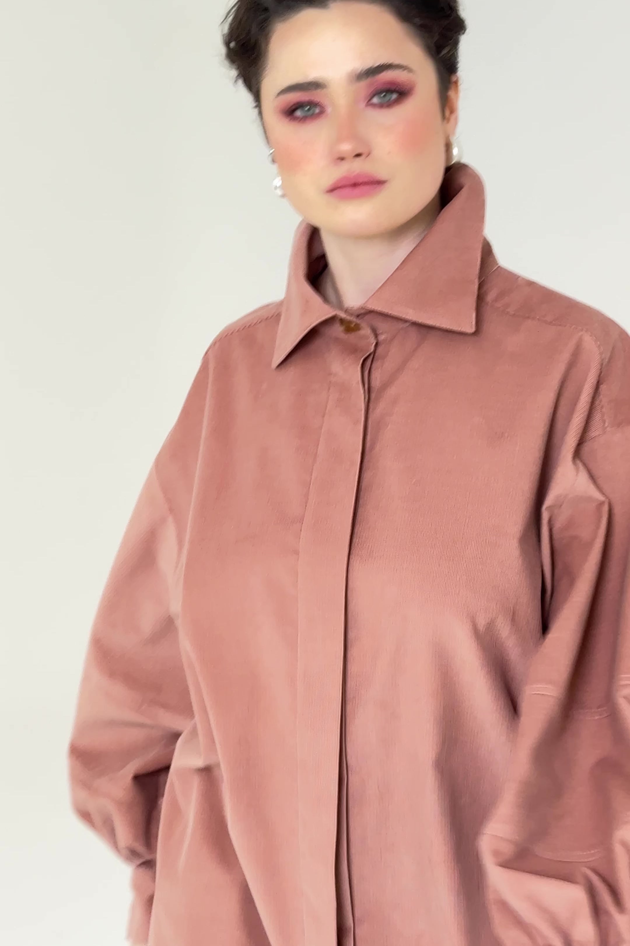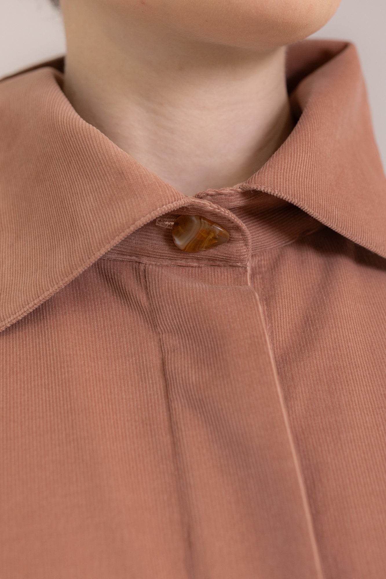 Dzięki prostej linii model sprawdza się również noszony jak lekka kurtka. Uszyta z drobnego sztruksu w kolorze dusty rose: miękkiego, szlachetnego w dotyku i wyrazistego w strukturze.