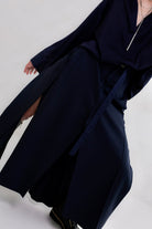 Tkanina? Idealnie dobrana wełna diagonalna w ponadczasowym kolorze navy, na podszewce w tym samym odcieniu. Szlachetna, elegancka, pięknie trzymająca formę.