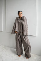 Uszyte z pętelkowanej tkaniny zwanej boucle łączącej surowy jedwab z wełną. Ta szlachetna tkanina charakteryzuje się nietuzinkową fakturą, miękkością i wspaniałym rodowodem, prosto od luksusowego francuskiego domu mody.