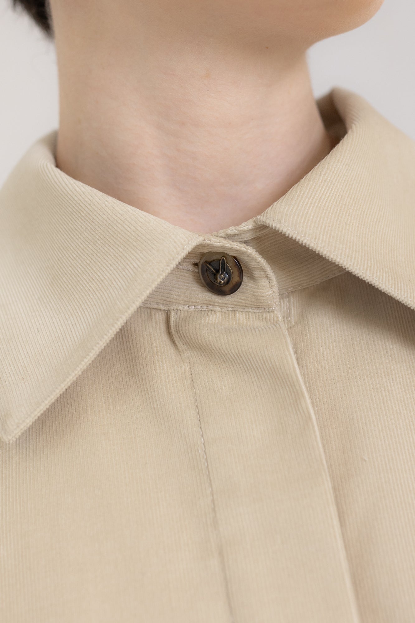 Dzięki prostej linii model sprawdza się również noszony jak lekka kurtka. Uszyta z drobnego sztruksu w kolorze Sandstone: miękkiego, szlachetnego w dotyku i wyrazistego w strukturze.