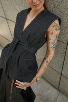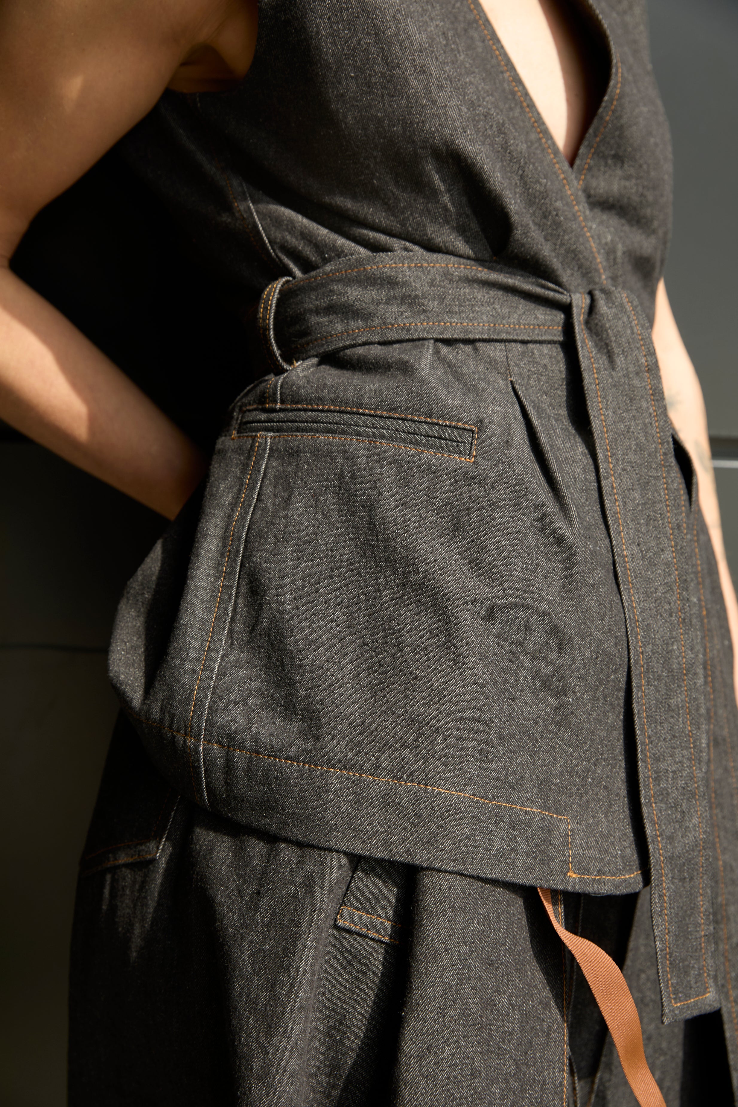 Uszyta z miękkiego, lekko spranego denimu – wygodna, ale z charakterem. To linia ramion gra tu główną rolę – lekko uniesiona, dodaje sylwetce siły i obecności. Nie przerysowuje, tylko ustawia ton.
