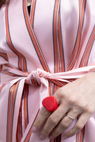 Tkanina, 100% satynowy jedwab pochodzi od włoskiego domu mody, którego kolorami flagowymi są właśnie te użyte na tkaninie.